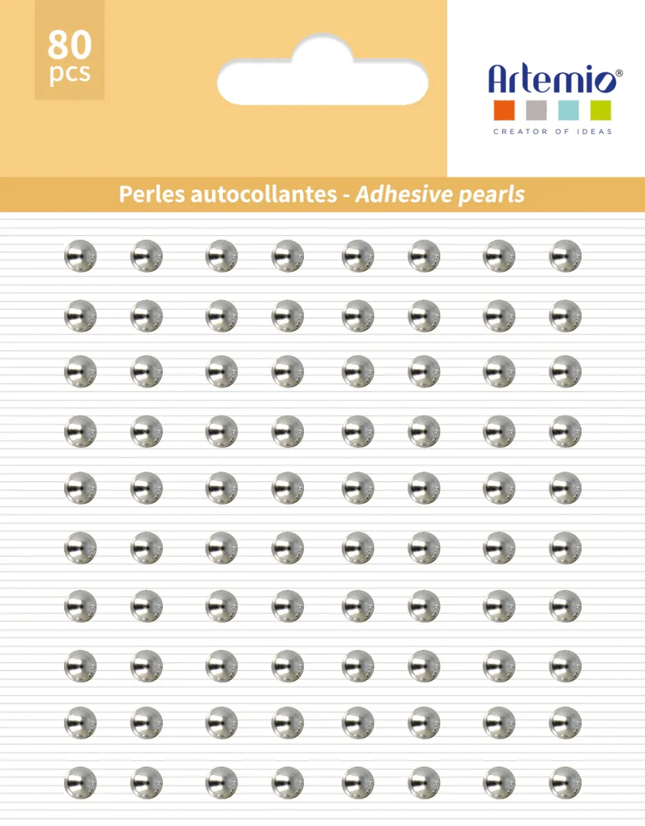 80 perles autocollantes argentées mesurant 0.5 cm de diamètre environ