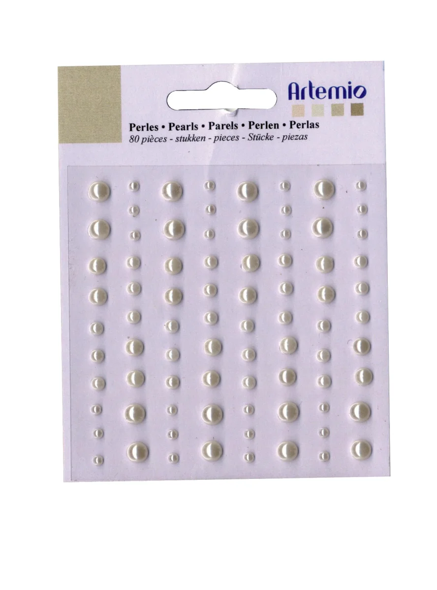 80 perles autocollantes ivoire mesurant de 0,25 à 0.5 cm de diamètre environ