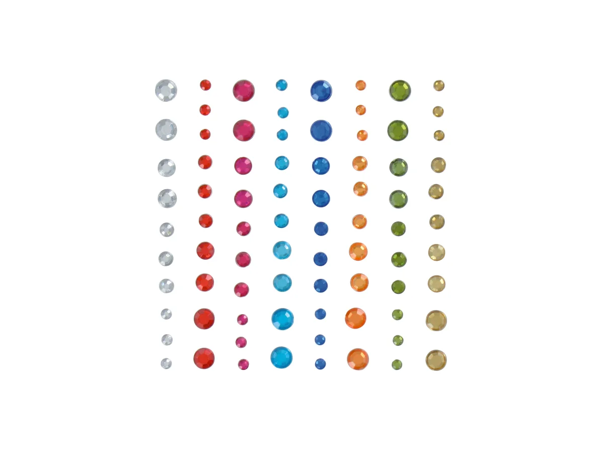 80 pierres strass rondes adhésives 8 couleurs – diamètres assortis