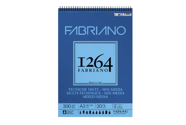 Ainsi les papiers de la gamme Fabriano 1264 ne jaunissent pas dans le temps et les couleurs ne seront pas altérées. Ici albums Mix média spirale petit côté, 300 gr/m² en format A3, A4 et A5.