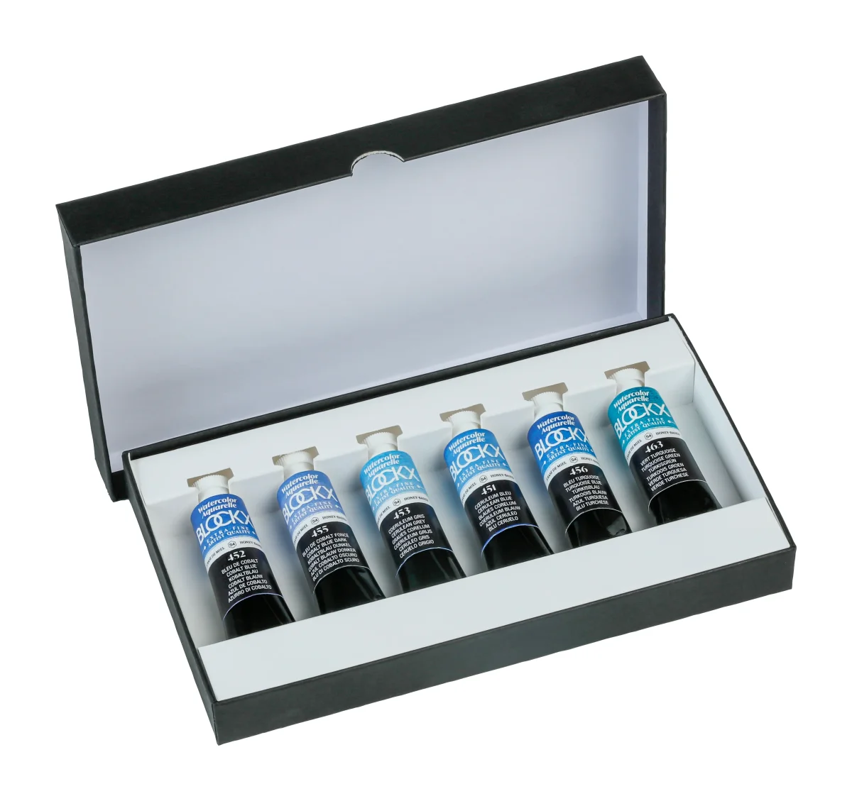 Coffret aquarelle Blockx de 6 couleurs cobalts (452-455-453-451-456-463))