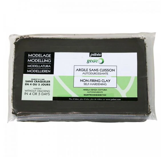 Argile de modelage sans cuisson est naturelle, auto-durcissante à l’air. Excellente plasticité pour le modelage. Ses fibres naturelles de cellulose permettent un séchage sans fissures, même sur des pièces de grandes tailles mais également de modeler des détails très fins. Pain de 1,5kg couleur gris béton