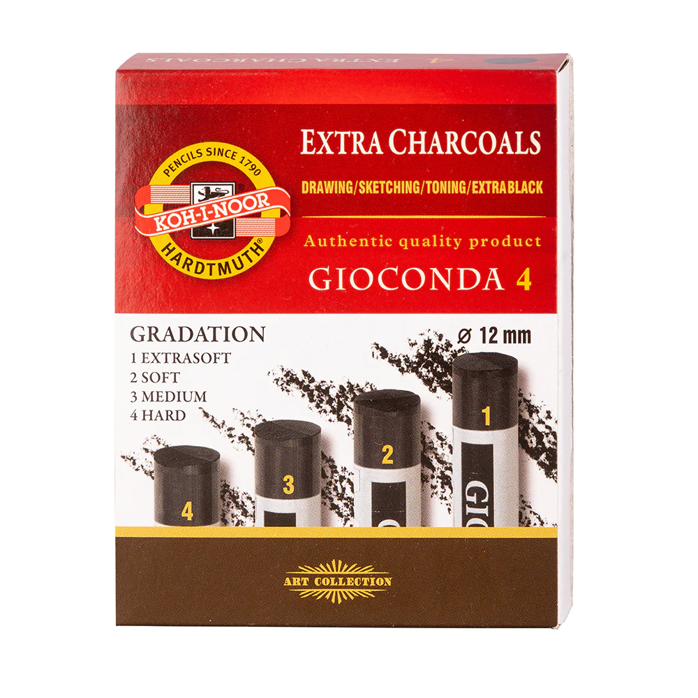 Les fusains compressés Koh-i-noor ont un diamètre de 12 mm et une longueur de 75 mm. 4 pièces d’un degré de dureté dans une boîte. Ces charbons sont produits en quatre degrés de dureté: 1, 2, 3, 4. Ces charbons sont utilisés pour de plus grandes surfaces. Ils sont un remplacement équivalent du charbon de bois naturel. Ils conviennent au dessin artistique et de loisir. Il est recommandé d’utiliser un fixateur pour stabiliser l’œuvre finale.