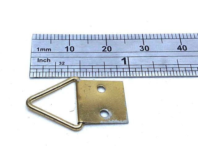 Blister contenant 5 triangles de suspension pour tableaux 15mm en laiton et 10 clous