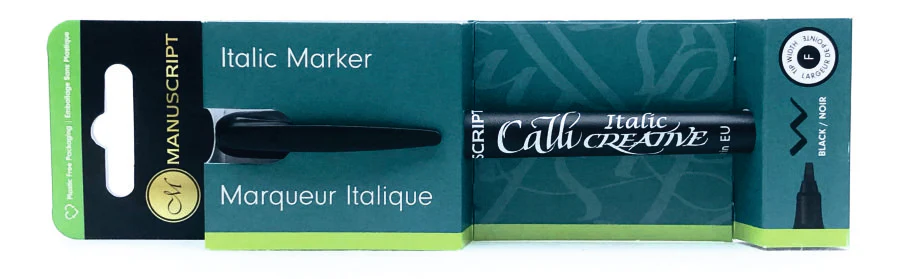 Le marqueur italique Manuscript est idéal pour les personnes qui débutent dans le magnifique art de l’écriture calligraphique. Il est également parfait pour ajouter une touche élégante et classique à votre écriture, par exemple lorsque vous écrivez des cartes, des invitations, des certificats ou des marque-places.