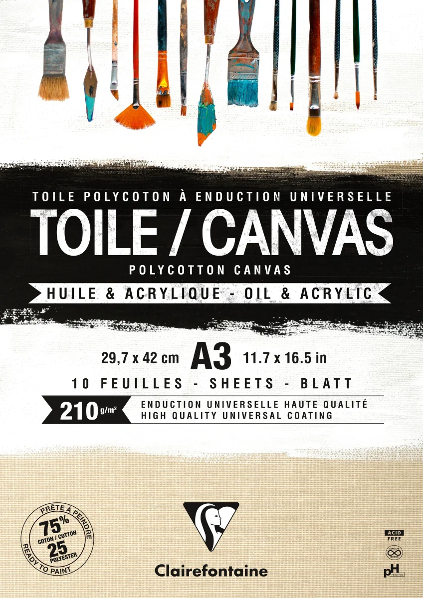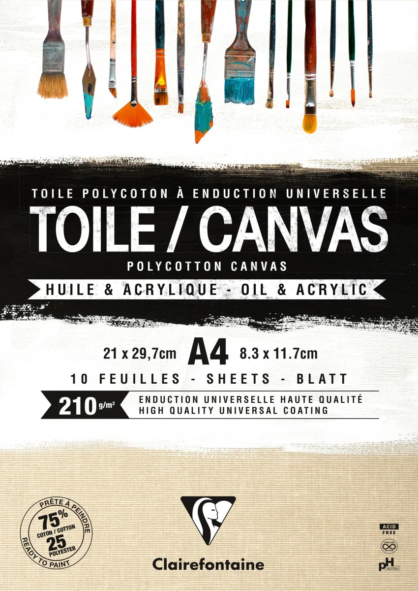 Bloc de 10 feuilles toile à peindre polycoton naturel – 210g/m² – Format A4 & A3