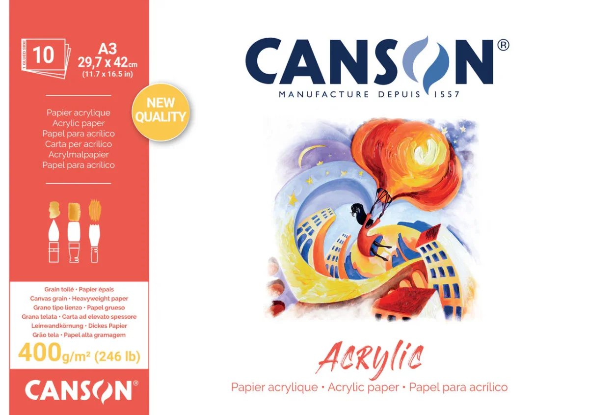 Papier épais grain fin qui permet de travailler en couches de peinture non diluées et très opaques afin d’obtenir de superbes empâtements. Il est également adapté à la peinture diluée pour une application en couches fines et des effets de transparence. Sa texture reproduit le tissage aléatoire du lin pour une meilleure accroche de la peinture. Idéal pour l’acrylique et toutes les techniques humides.