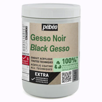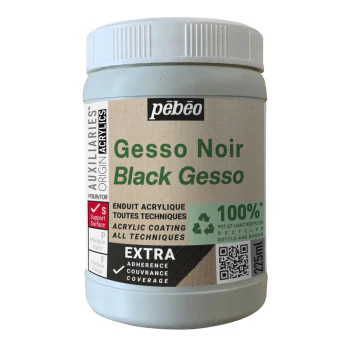 Le gesso Origin Acrylics de Pébéo est un apprêt noir EXTRA couvrant et adhérent en une seule couche pour la préparation des supports à peindre.