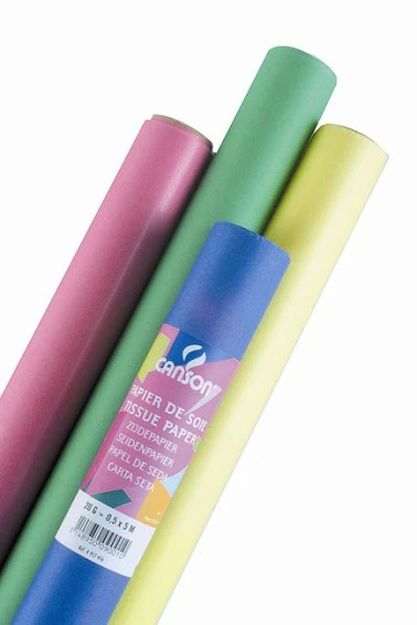 Avantages : Le papier de soie Canson® est sans pli et teinté dans la masse, pour une meilleure conservation de la couleur. Sa transparence permet de créer des jeux de lumière.