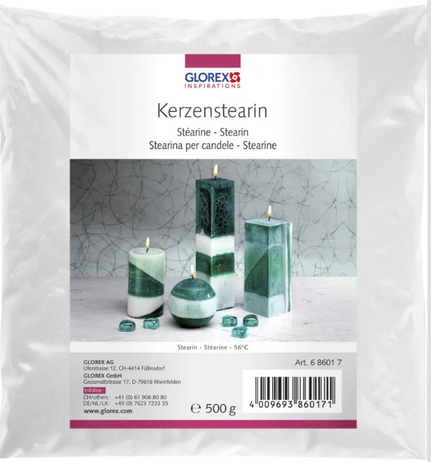 Par le mélange de 10 à 20% de stéarine avec des granulés de cire, on obtient des bougies d’une belle couleur blanche. De plus, les bougies brûlent mieux et plus longtemps.