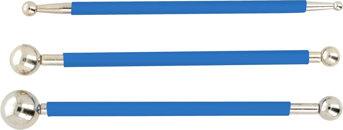 Lot de 3 Stylets à embosser double pointe de différentes tailles, avec manche en métal. Un stylet mesure 13 cm et de 0.5 cm à 1.5 cm de largeur environ