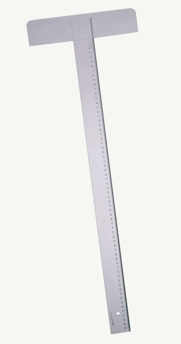 Té acrylique à tête fixe collée, 5mm d’épaisseur – 1 bord gradué anti-tache 65cm + 1 bord biseauté gradué en cm.