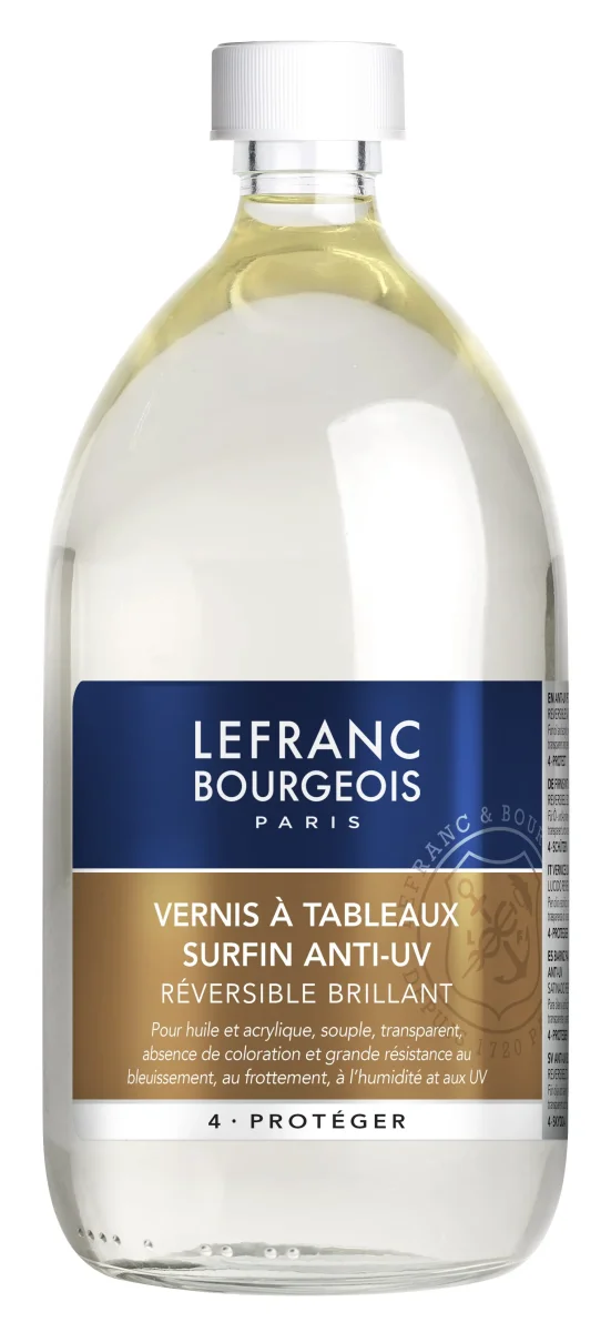 Il offre une certaine souplesse, une absence de coloration et une grande résistance au bleuissement, au frottement, ainsi qu’à l’humidité et au mois. Son brillant discret convient aux peintures de grandes dimensions.Le rôle du vernis à tableaux est de protéger efficacement contre la poussière grasse, les fumées, les éraflures et les agents atmosphériques. Il sert également à conférer un aspect uniforme à l’œuvre. On doit attendre entre 6 mois et 1 an avant de l’appliquer.